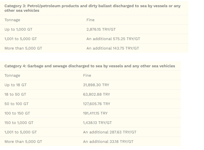 • Tehlikeli atık veya benzeri maddelerin Türk karasularına bırakılması durumunda, ceza Kategori 1’deki tutarın 10 katı olacak.