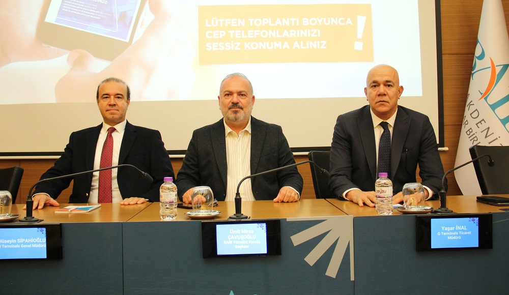 Batı Akdeniz İhracatçılar Birliği'nden (BAİB) yapılan açıklamaya göre, BAİB Başkanı Ümit Mirza Çavuşoğlu, QTerminals Antalya Limanı Genel Müdürü Hüseyin Sipahioğlu, QTerminals Antalya Limanı Ticaret Müdürü Yaşar İnal, BAİB üyeleri ve gümrük müşavirlerinin katılımıyla birlikte toplantı düzenlendi.