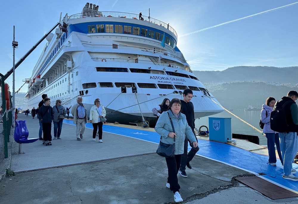 İşlemleri tamamlanan turistlere, liman çıkışında Rusça broşürler verildi.