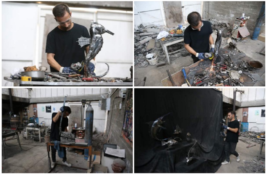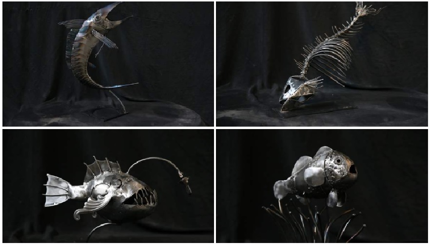 Eskişehir'de yaşayan metal heykel sanatçısı 22 yaşındaki Mücahit Diyar Arız, baba mesleği olan balıkçılıktan ilham alarak hurda metalleri kullanarak deniz canlılarının heykellerini oluşturdu.