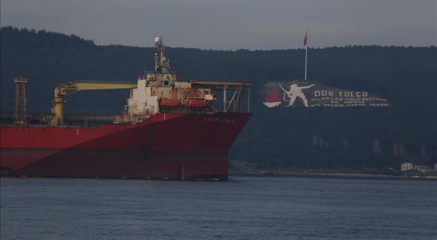 İngiltere bandıralı "Gryphon A" adlı boş doğal gaz tankeri, Çanakkale Boğazı'ndan geçiş yaptı.