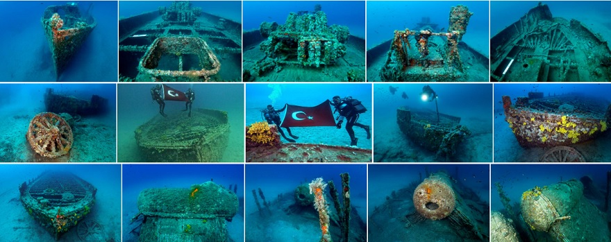 Çanakkale Savaşları'nın denizin derinlerdeki sessiz tanığı batıklar, 30 Ağustos Zafer Bayramı dolayısıyla yapılan anı dalışıyla görüntülendi.