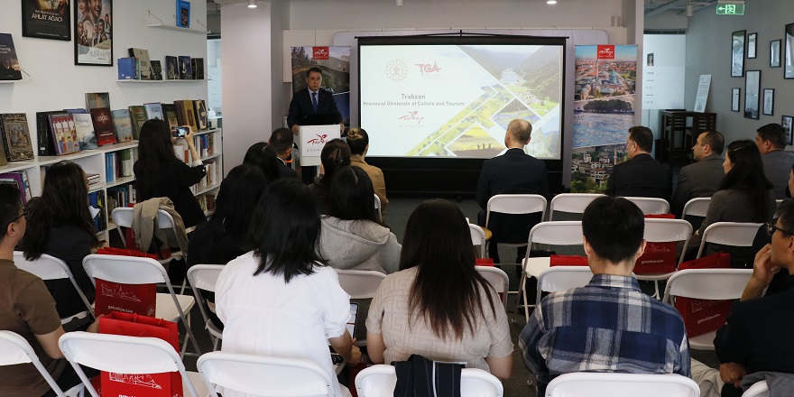 Trabzon İl Kültür ve Turizm Müdürü Tamer Erdoğan öncülüğündeki heyet, tarihi, kültürel ve doğal cazibe unsurlarıyla ilin ve Doğu Karadeniz bölgesinin turizm potansiyelini Çinli tur operatörlerine ve turizm alanında faaliyet yürüten kuruluşların temsilcilerine anlattı.