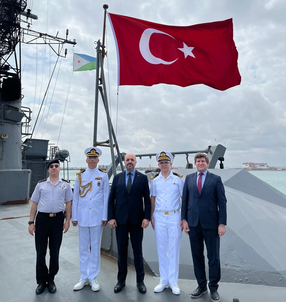 DEHUKAM Yönetim Kurulu Başkanı Süleyman Önel ve DEHUKAM Müdürü Mustafa Başkara Somali görev gücümüz kapsamında Cibuti limanına intikal eden TCG Sancaktar, TCG Gökova ve TCG Bafra’dan oluşan filomuzu karşıladı. Karşılama kapsamında TCG Bafra gemisini ziyaret eden DEHUKAM heyeti gemi komutanı ve Cibuti askeri ateşelerimiz ile görüşme gerçekleştirdi.