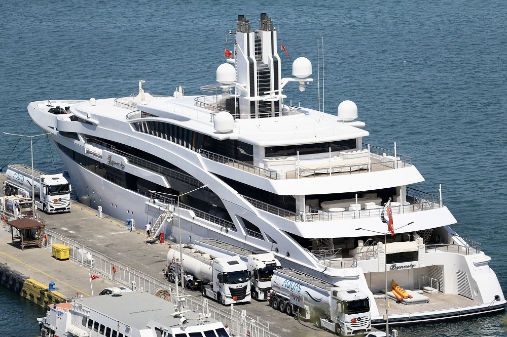Cayman Adaları bayraklı "I Dynasty" adlı mega yata, Muğla'nın Fethiye ilçesinde tankerlerle akaryakıt ikmali gerçekleştirildi.