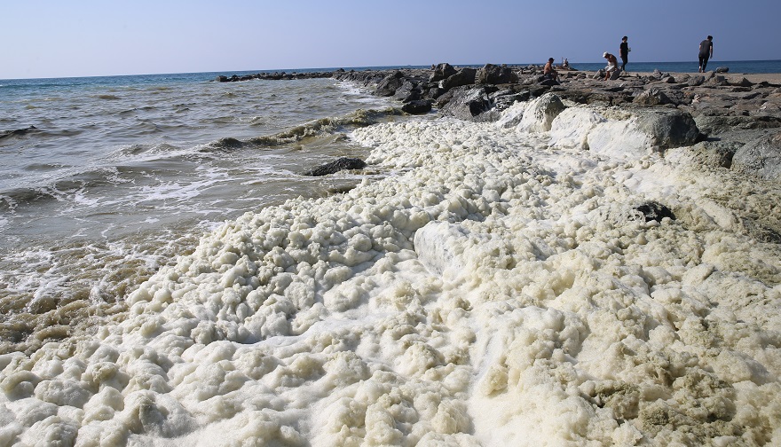 Hatay'da deniz kıyısında köpük benzeri tabaka oluştu