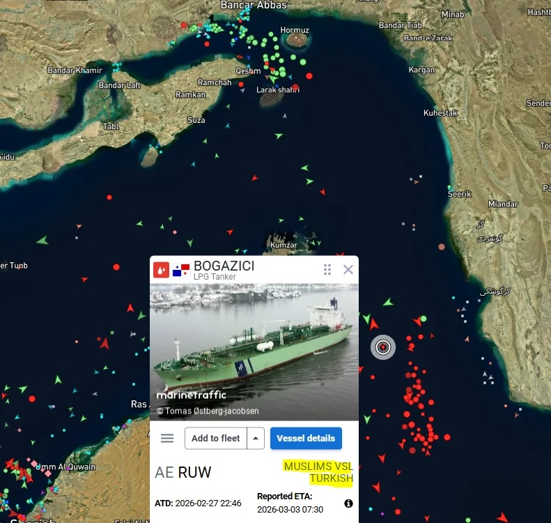 Gerilimin tırmandığı Hürmüz Boğazı’nda bulunan ve bir Türk şirketine ait olan “Boğaziçi” isimli LPG tankeri de dikkat çeken bir önlem aldı. Çatışmaların ortasında kalmamak ve olası bir saldırının hedefi olmamak amacıyla geminin AIS (Otomatik Tanımlama Sistemi) üzerindeki adı değiştirildi.