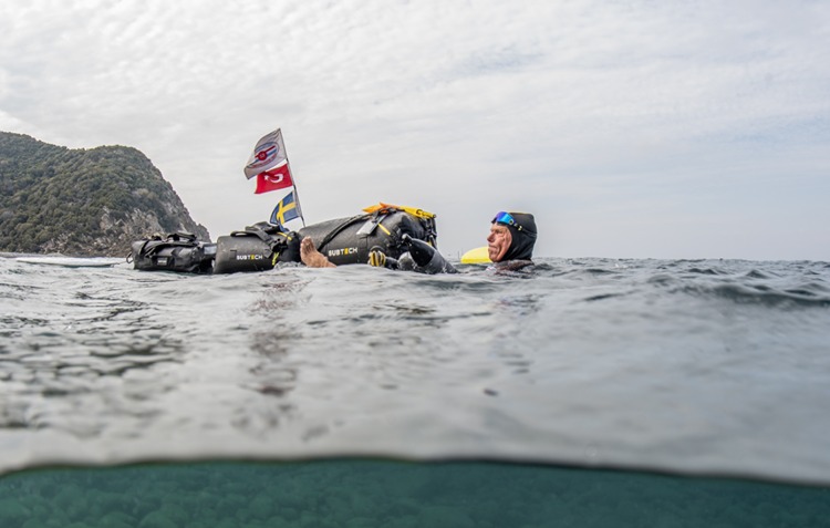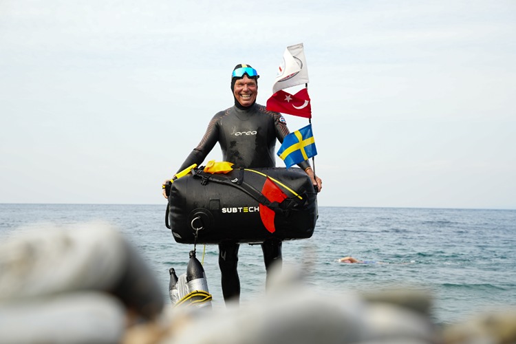 İsveçli yüzücü ve beraberindekiler, yaklaşık 1,5 saat kulaç attıktan sonra Tayfur köyüne bağlı Sazlı Limanı'ndan karaya çıktı. Su altı fotoğrafçısı Murat Şentürk de Tammi'nin Türkiye'de son kez kulaç attığı anları su altından görüntüledi.