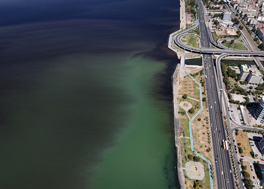 İzmir Körfezi'nde son günlerde gelen kötü koku şikayetlerinin ardından sahile çok sayıda balık ölüsü vurduğu görüldü. Denizin renginin ise yeşil ve kahverengine döndüğü görüldü.