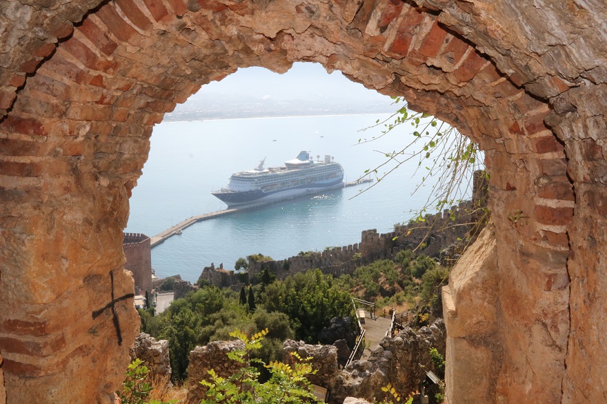 Marmaris'ten ayrıldıktan sonra rotasını Antalya'ya çeviren 264 metre uzunluğundaki kruvaziyer, sabah saatlerinde Alanya'ya ulaştı.