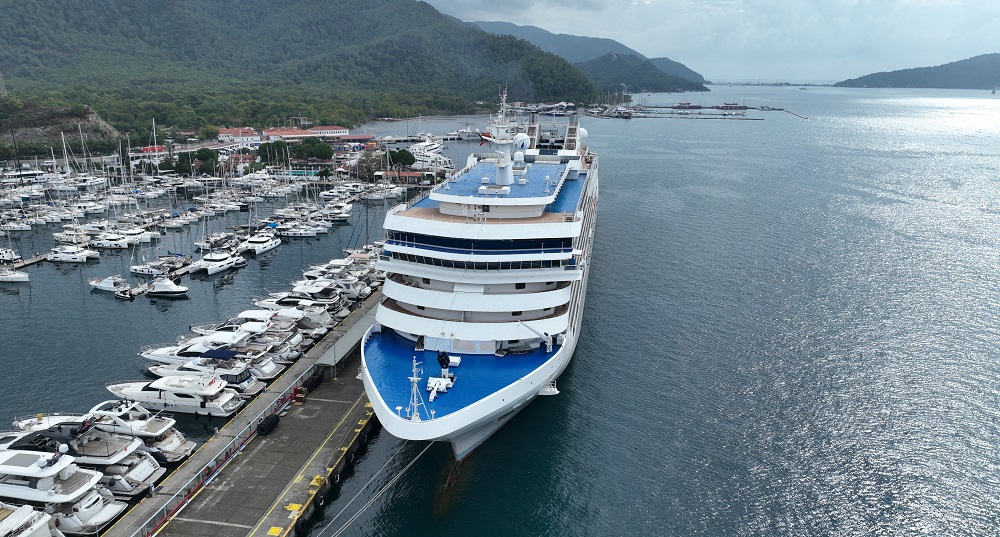 Malta bayraklı 213 metre uzunluğundaki gemi, Marmaris Limanı'nın büyük iskelesine yanaştırıldı.