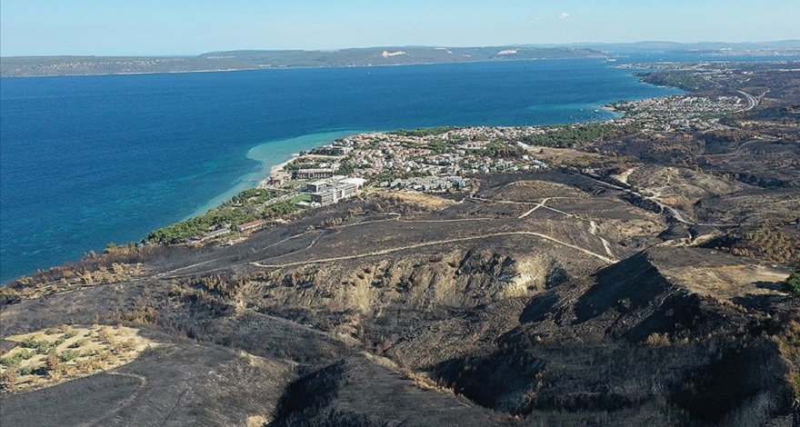Çanakkale'de üniversite kampüsüne kadar ilerleyen yangın sonrası tam yanmayan ağaçların simsiyah bir renge büründüğünü hatırlatan Aslan, şöyle devam etti: