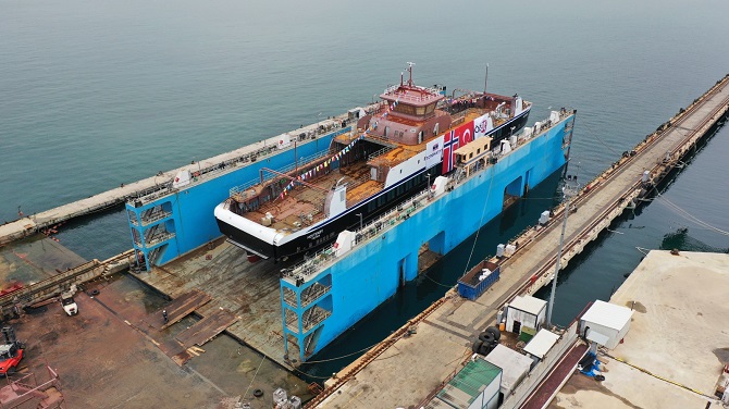 Özata Tersanesi, Norveç’in önde gelen feribot işletmecilerinden Torghatten AS için inşa ettiği tamamen elektrikli araç ve yolcu feribotu Misterøy’u denize indirdi.