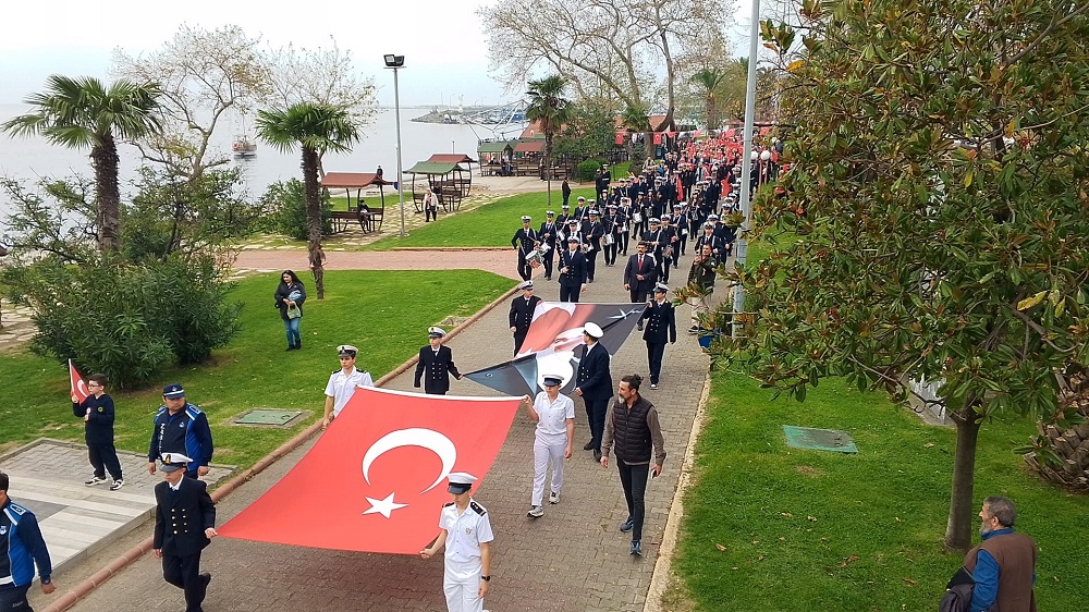 Konuşmaların ardından askeri gemiyle denize açılan protokol üyeleri, 3 geminin batırıldığı yere çelenk bıraktı.