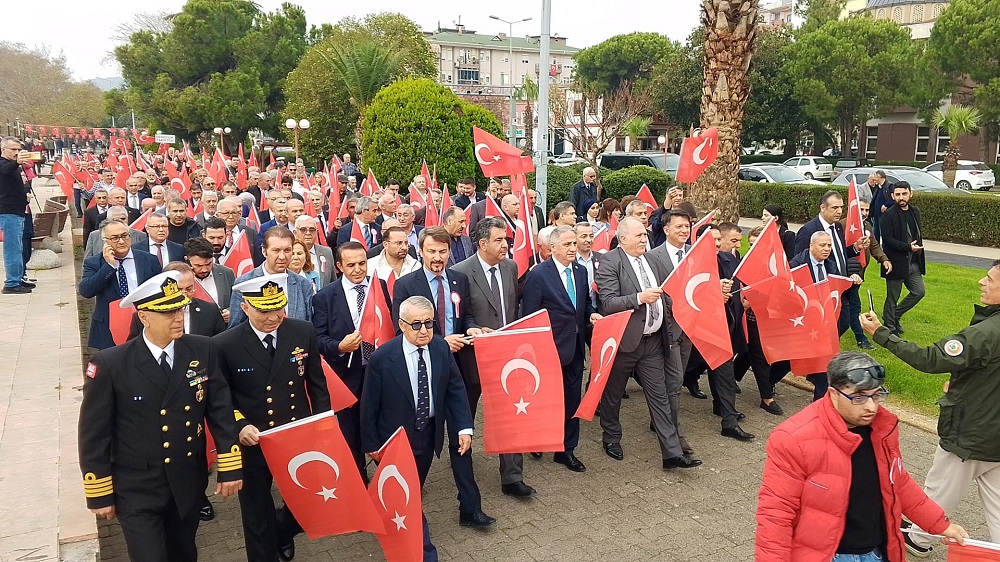 Anıta çelenk konulmasının ardından saygı duruşunda bulunuldu, İstiklal Marşı okundu.