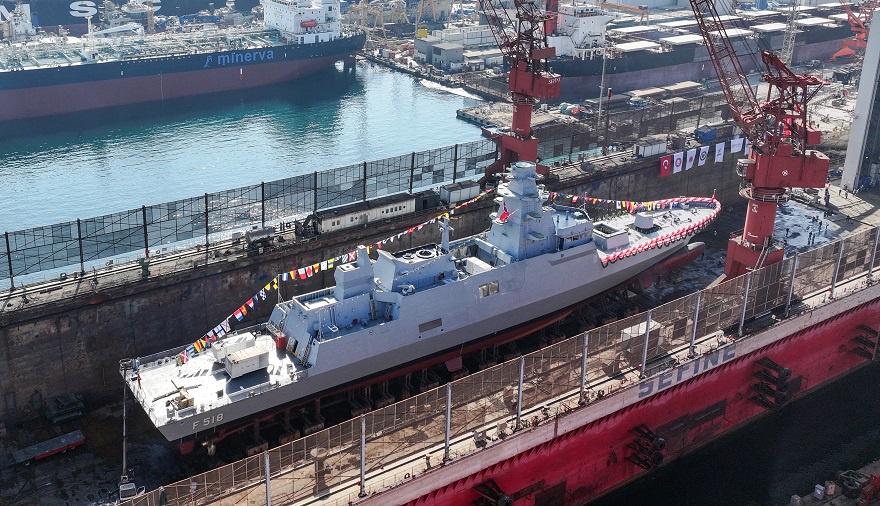 "Mavi vatan"da Türk Deniz Kuvvetlerinin gücüne güç katacak MİLGEM 6-12'nci İstif Sınıfı Fırkateynlerin Tedariki Projesi kapsamında inşa edilen 8'inci gemi TCG İçel'in (F-518) denize indirme töreni Sefine Tersanesi'nde yapıldı.