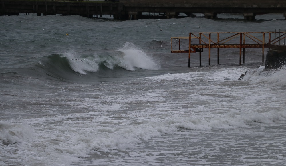 Poyrazla oluşan dalgalar, kıyıya yosun ve çeşitli atıklar sürükledi.