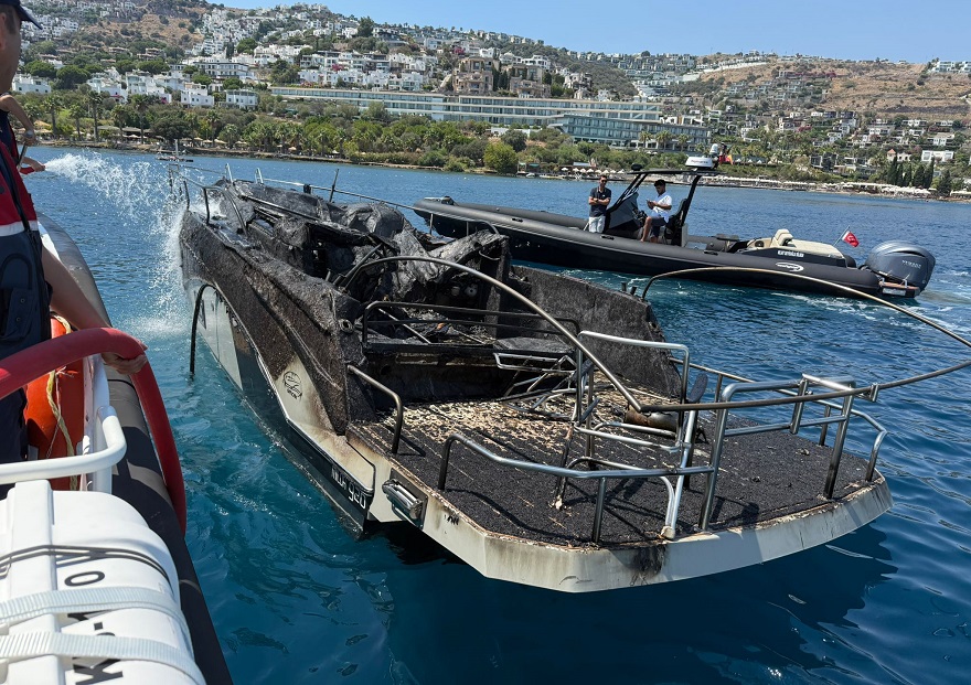 Muğla'nın Bodrum ilçesinde, teknede çıkan yangın hasara neden oldu.