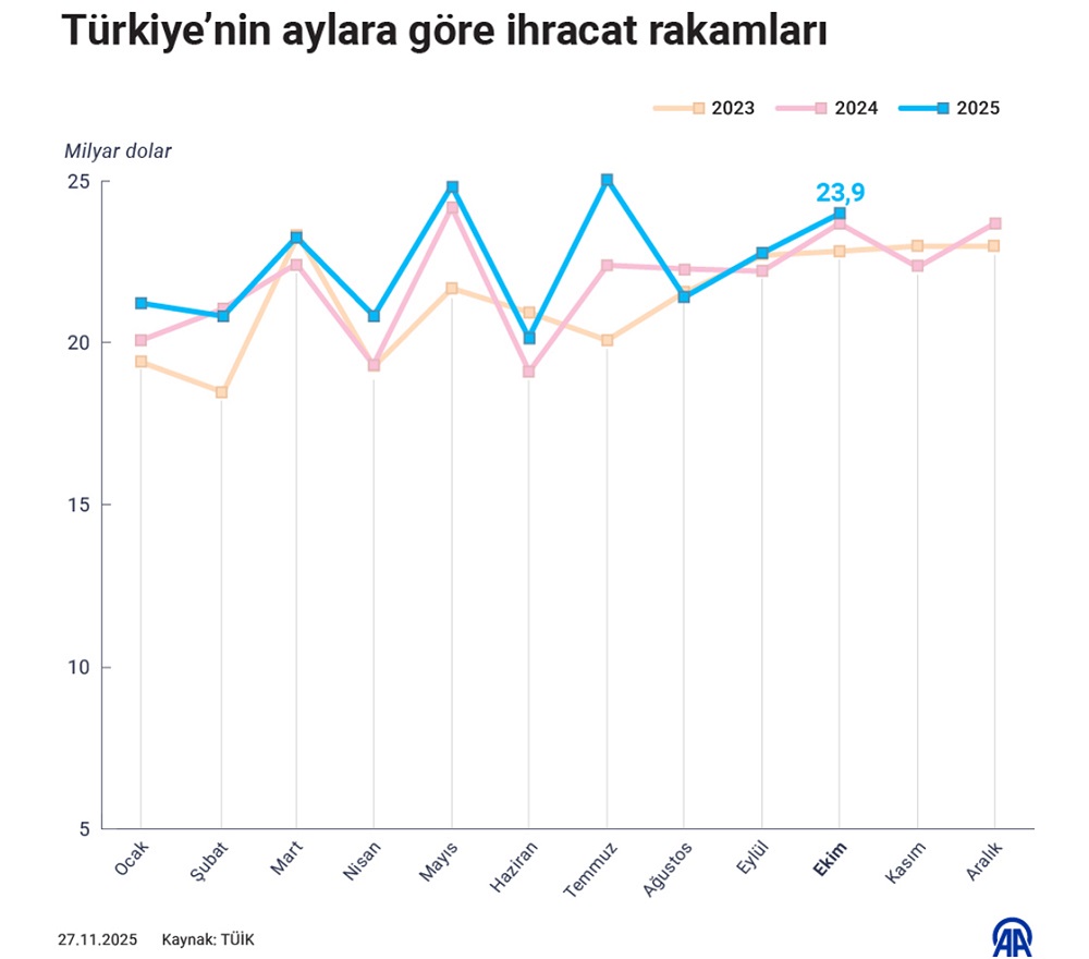 Türkiye'nin ihracatı ekimde 23 milyar 941 milyon dolara yükseldi