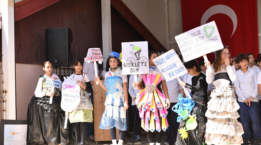 Öğrencilerin renkli sahne gösterileri sunduğu programda, projeye özel hazırlayıp seslendirdikleri Sıfır Atık Mavi şarkısı beğeni topladı.